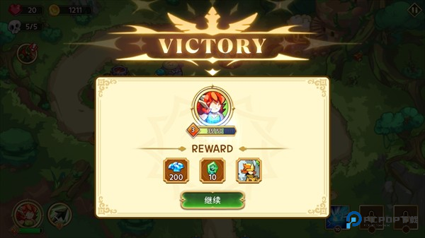 5、坚持住把每波敌人都干掉,战斗胜利时奖励会自动到手,升级发展就靠它了。