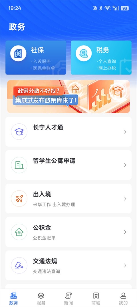 3、【政务】页面下可以为用户在线输求职、出入境、公积金、交规等事项