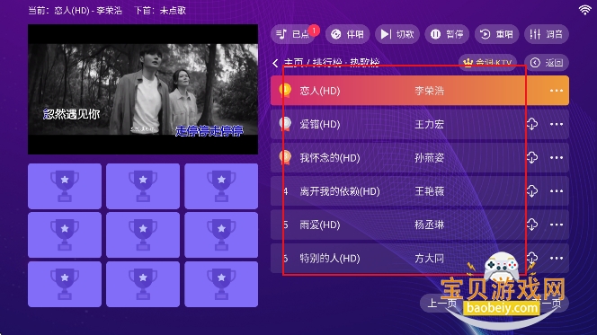 2、例如进入排行榜,可以查看近期热榜,方便为大家点歌提供参考