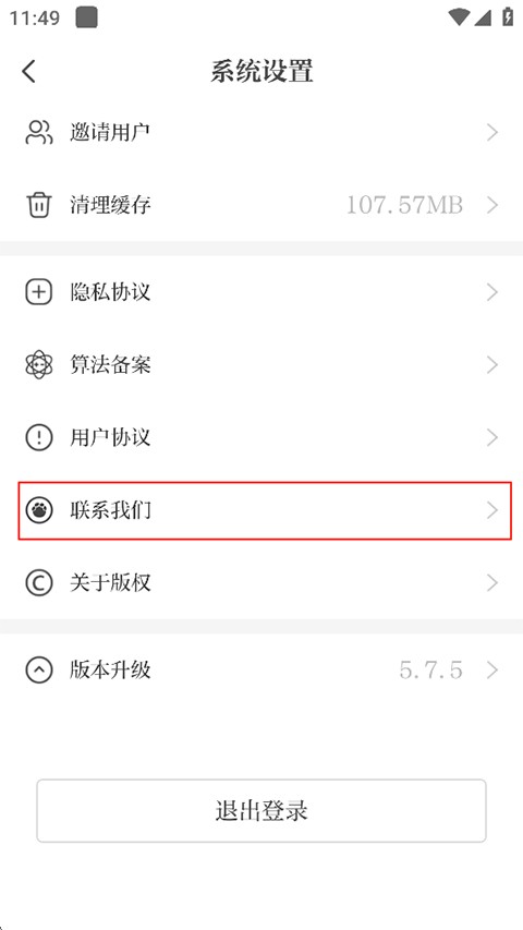 2、点击联系我们;