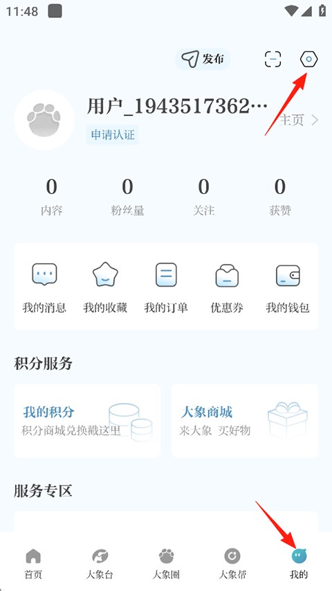 1、点击我的-右上角发布;