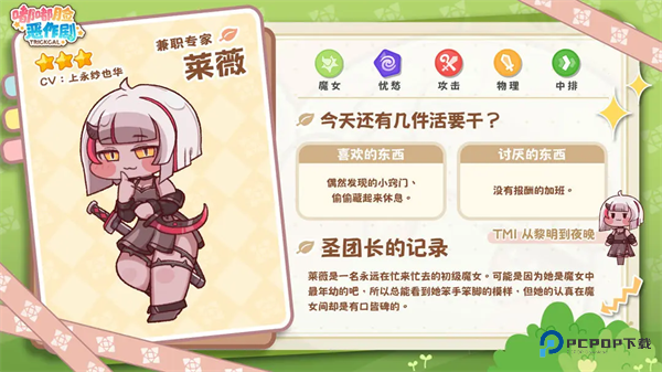 圣团长笔记噗呲道:哎哟,莱薇永远停不下的魔女娃儿,幼小稚嫩下磕磕绊绊干着活,那份敬业精神倒让所有人都说 “靠谱”。
