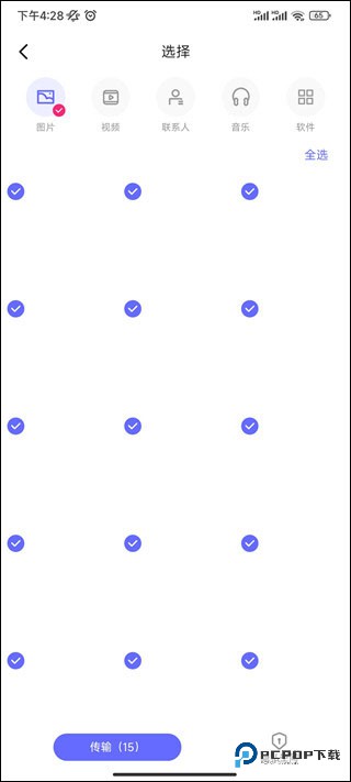 1、下载安装后打开 APP,主界面清晰展示可传输的数据类型,如图片、视频、联系人等。