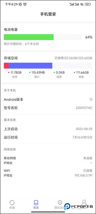 4、进入管家模块,还能实时掌握手机的电量状态和剩余存储空间。
