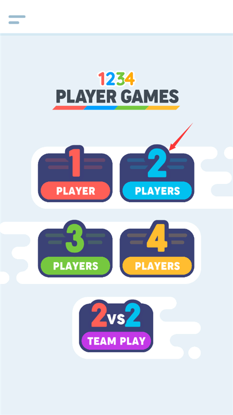 1、下载安装四人游戏对战打开进入界面,首先我们确认是几个人玩,如果是两个人选择2个人模式玩法;