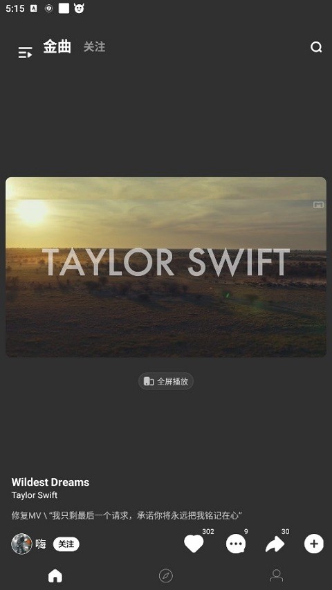 1、进入“音悦台”,找到点播的歌曲,如图所示,点开“全屏播放”。