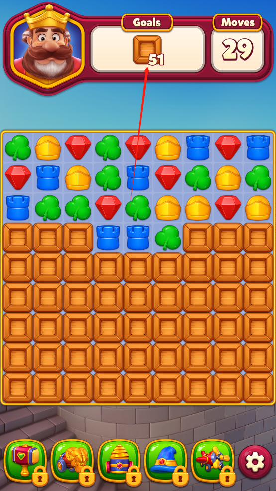 1、在游戏中,玩家需要完成一个或多个目标才能通过关卡。这些目标显示在游戏的中上部。
