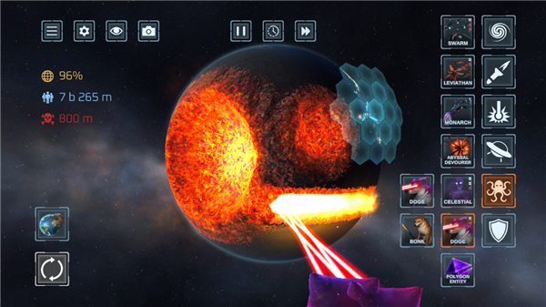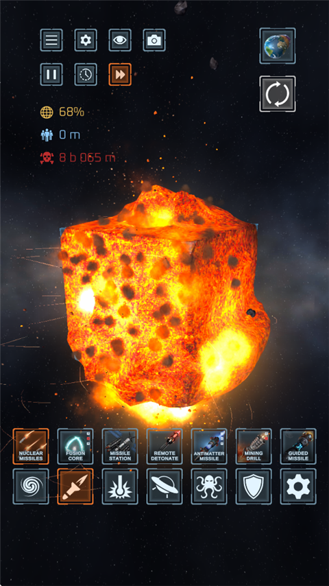 星球毁灭模拟器无广告版是一款具有高度自由性的休闲模拟破坏手游,游戏当中以星球作为题材,你将自由的利用多种强大武器来进行毁灭星球,从而在此轻松释放压力,获得许多乐趣。游戏当中整体风格算不上十分精致,但是其逼真的破坏效果,生动的武器,甚至还有其简单易上手的操作与趣味横生的玩法,这些都赋予了玩家极大的乐趣所在。