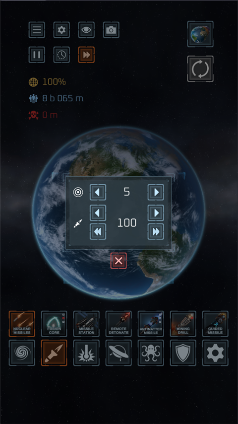 1、打开星球毁灭模拟器游戏,设置一个地球。