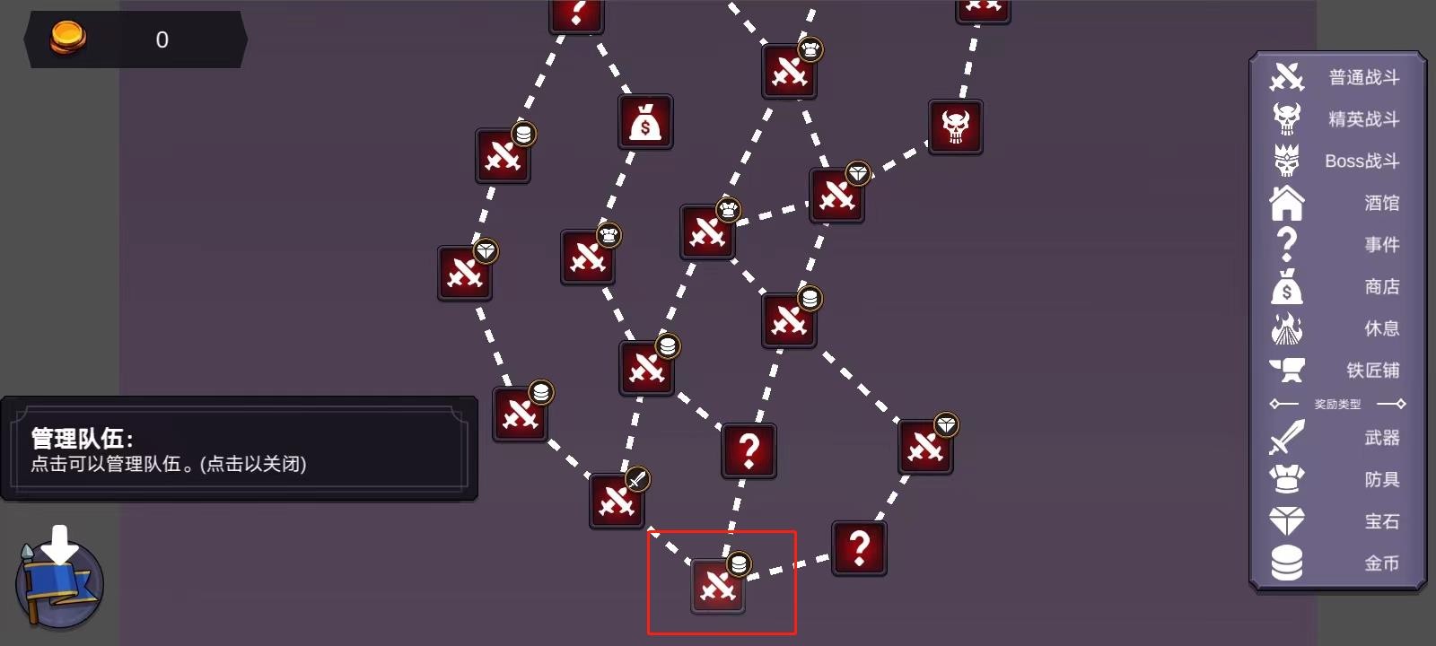 3、点击左下角的按钮可以进行队伍的管理,接下来点击下图这个地方即可进入战斗;