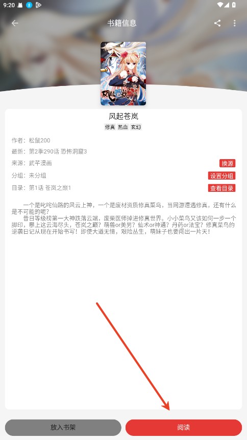 1.进入一本漫画的阅读界面。