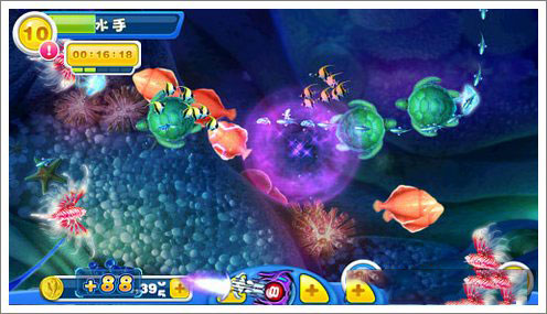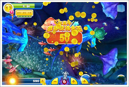 2、成功捕获的鱼儿都会化为滚滚金币,不同鱼群回报的金币数额也不尽相同。