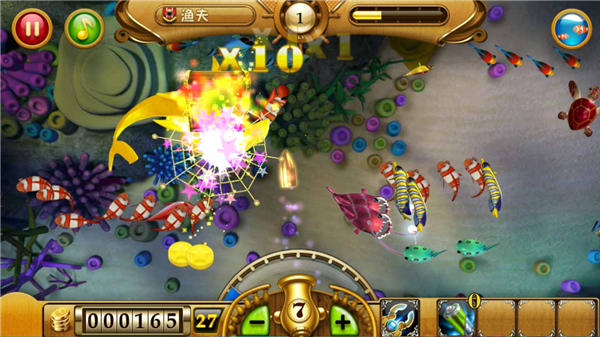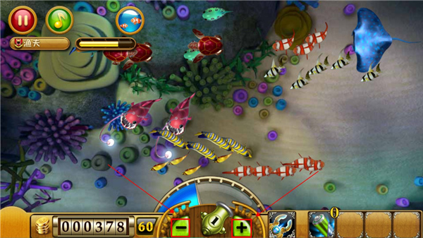 4、开放自由调整倍率与不同武器组合出多样捕鱼策略。