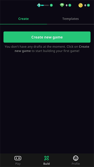 3、在build界面,用户可以建立自己的游戏项目,发挥创意和想象力。
