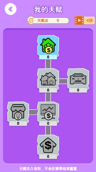 天赋点可以增加对于某个领域的加成,例如炒房、商业、利息等等。
