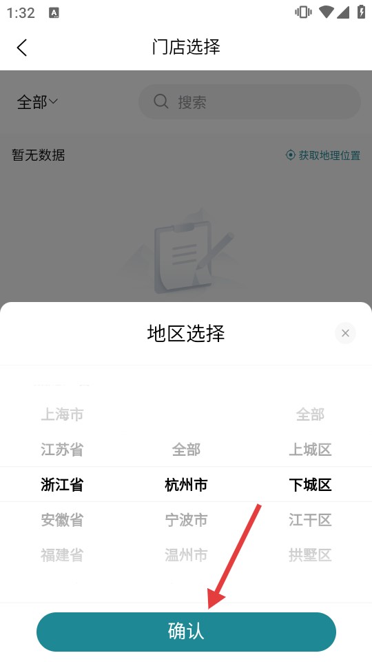 2、在门店选择页面,选地区,点【确认】,进入门店预约页面。