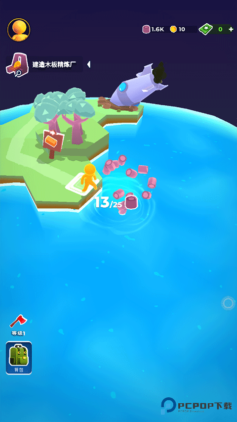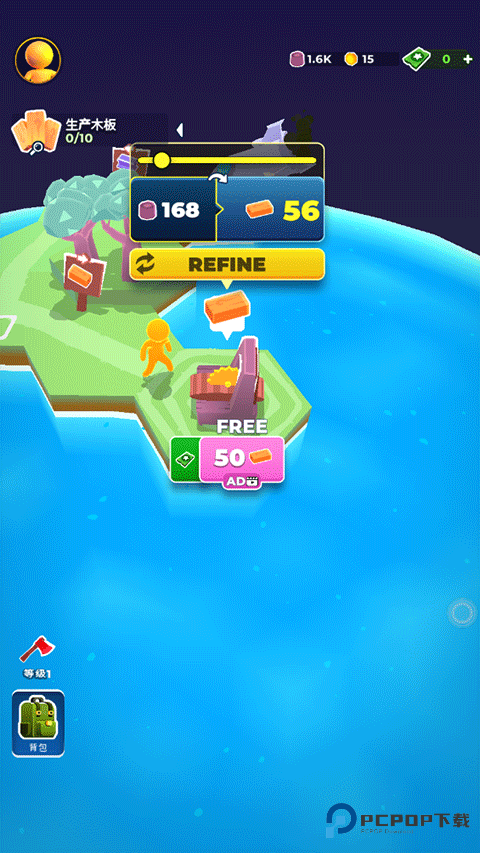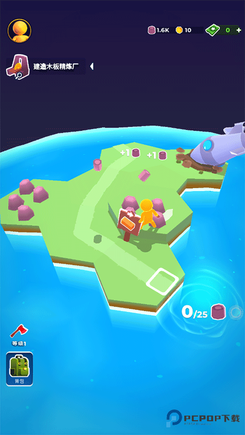 2、砍下来的木头会变成发光的小方块,可别在手里攥着,把它们直接丢在你旁边空着的地面上。神奇的事情会发生 —— 它自己就铺开变成新的土地了!地多了,树也跟着多起来,资源自然更丰富。