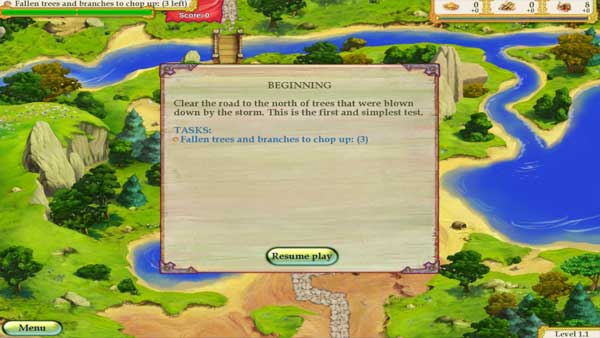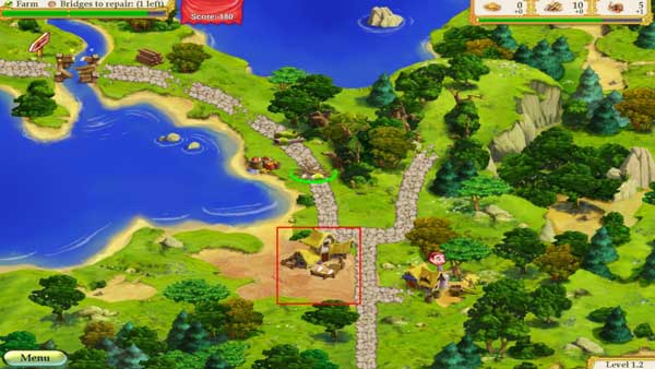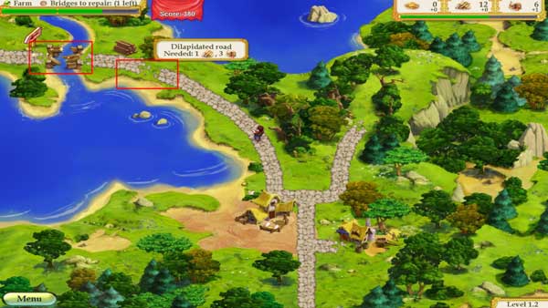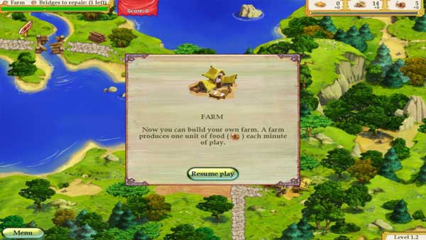 6、第二关就是要建造属于自己的农场。你不会总是有足够的粮食,所以你需要建立自己的农场。记住,你需要木材来建造一座建筑物。一旦你建造了一个农场,重建通往桥梁的道路和桥梁本身。任务:需要建造的建筑,需要修复的农场桥梁。