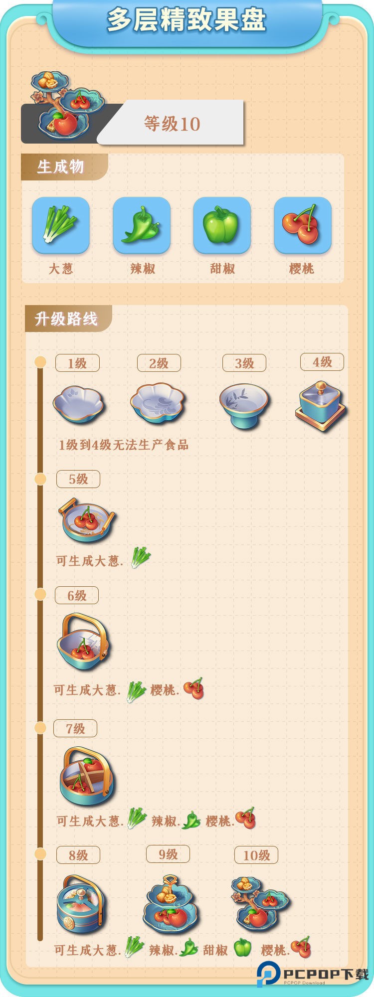 果蔬盘→精致果蔬盘→高脚果蔬盘→果蔬屉→鲜蔬果盘(大葱)→果蔬篮(大葱 + 樱桃)→分格果蔬篮(大葱 / 辣椒 / 樱桃)→果蔬笼(大葱 / 辣椒 / 甜椒 / 樱桃)