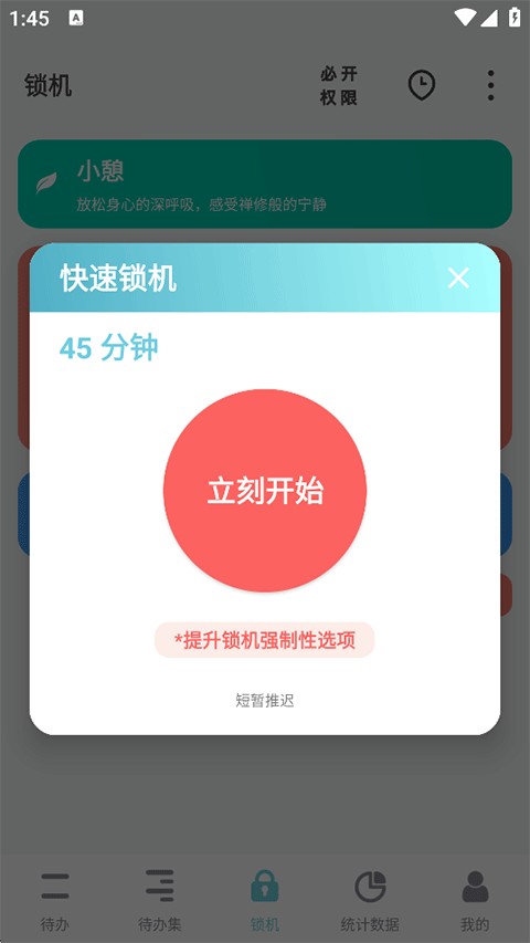 3、点击立刻开始将强制在规定时间内锁机;