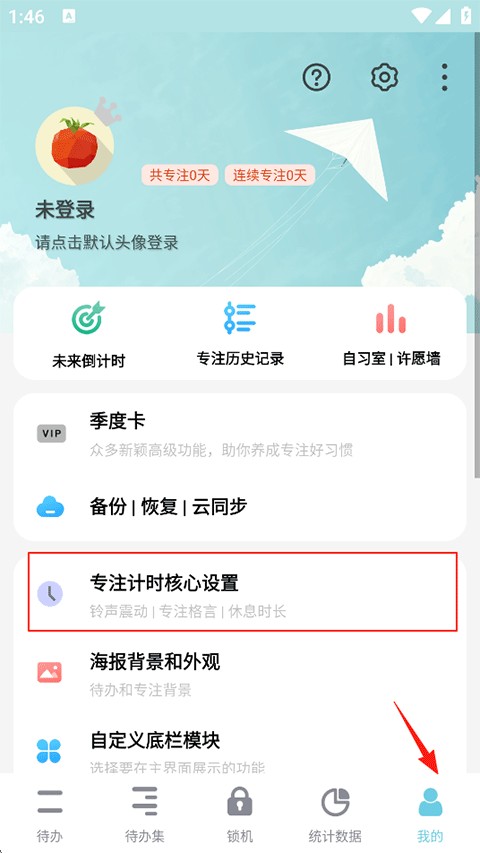 1、点击我的-专注计时核心设置;