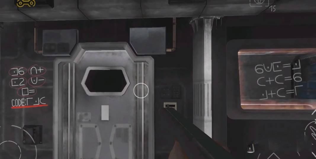 2、玻璃上的公式算出来就是进入这个房间的密码,密码是会随机刷新的所以帮不了你,大家也能自己算,进去之后捡起电池之后可以存档最后找到楼梯拔动开关就能出去了。
