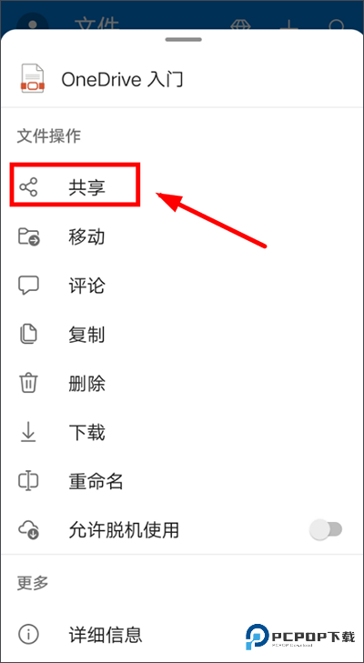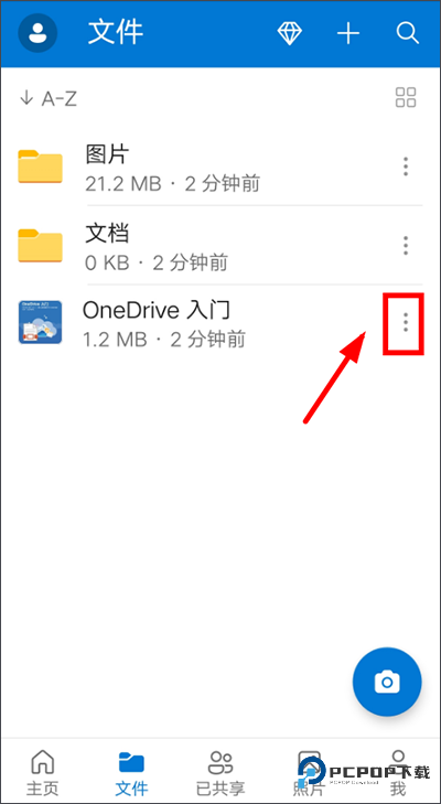 3、文件乖乖躺在 App 里了,比如你想分享那个 “OneDrive 入门” 文件。嗯,点一点它名字右边那三个点。