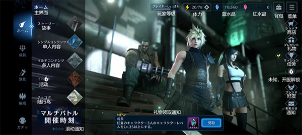 目前有FF7、CCFF7、FF7FS(居然没有地狱犬和危机前)。完成剧情所有人物都能获得经验,不消耗体力。剧情章节会随着游戏运营慢慢解锁,务必优先完成故事模式