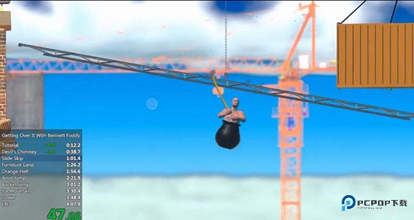4、碰上各种障碍挡路?别怕,把榔头当钩子用就对了。旋转摆动鼠标,让榔头勾住或撑住周围的物体,这样人就能往前挪啦。