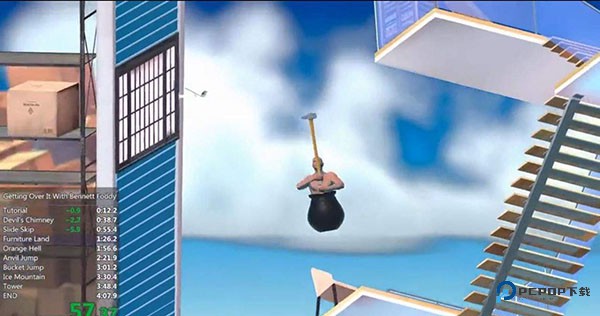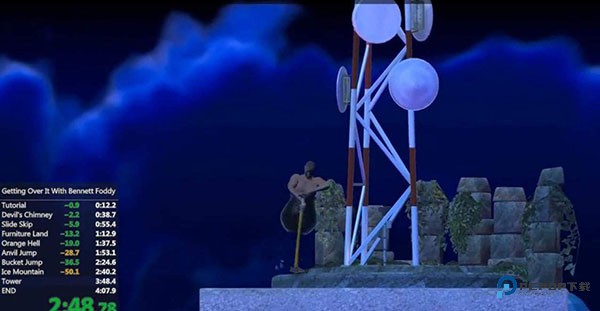 《和班尼特福迪一起攻克难关》用独特的物理引擎打造出高难度攀登挑战。从初始坑洼曲折的地形到需要精准操作的陡峭悬崖,不断变化的场景为玩家提供沉浸式视觉旅程。每一次失败都令人抓狂,成功登顶时的喜悦却格外珍贵,这种强烈的情绪反差成为游戏最独特的魅力。