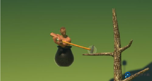1、刚进游戏,你看到个窝在罐子里的人,手上只有一把榔头。用鼠标左右晃动能控制榔头旋转,试试把榔头尖朝下转过去。