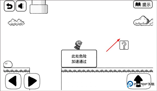 1、第一步是走到提示牌的正下方,接着立刻往回跑。脚下的地快要塌了?赶紧抓住时机跳起来,蹦到提示牌的顶上就安全啦。