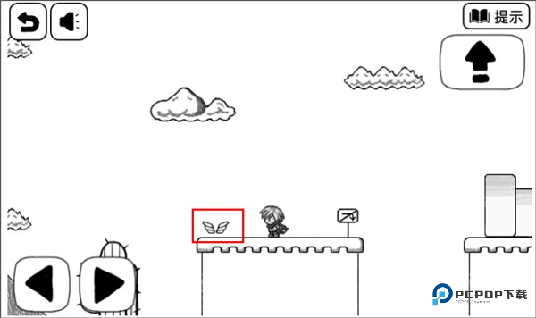 2、跳跃按钮被挪到右上角去了吧?别犹豫,跳过去把它 “吃” 掉,你会获得一对翅膀。