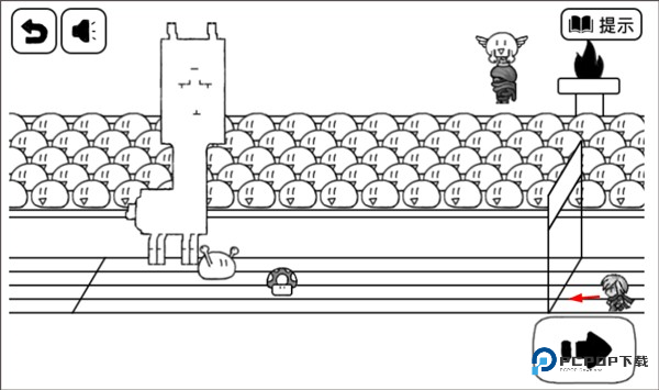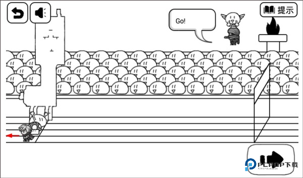 1、这一关开始有点不一样。先点住主角往屏幕左边滑动,让主角调个头转向。