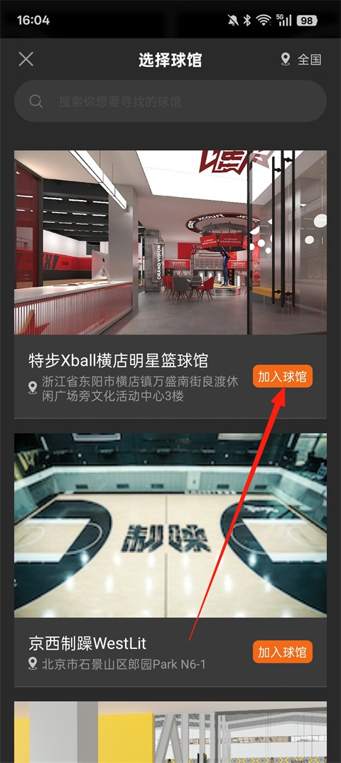 3、选择球场点击【加入球场】