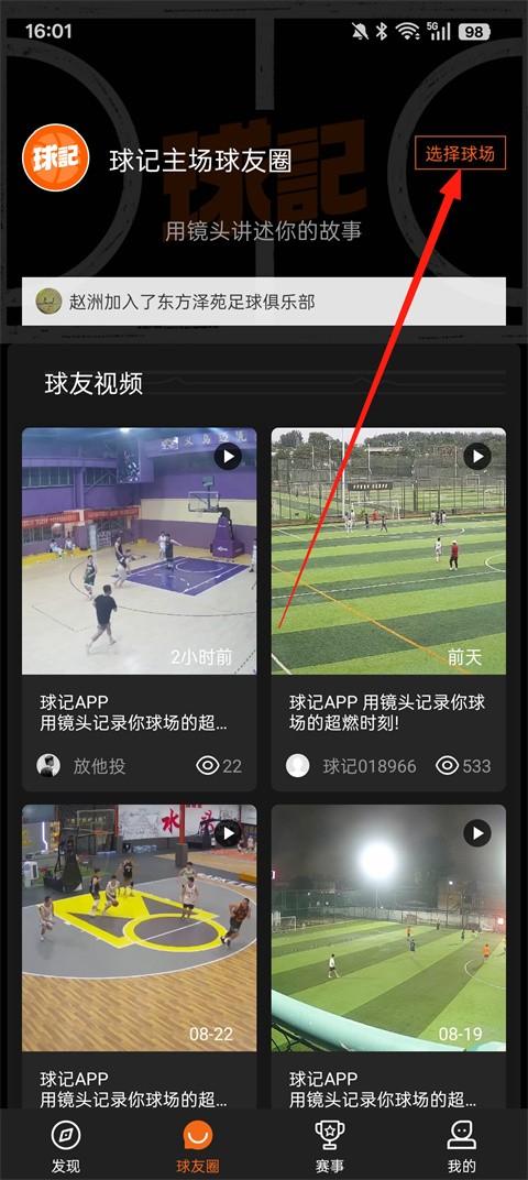 2、然后点击【选择球场】