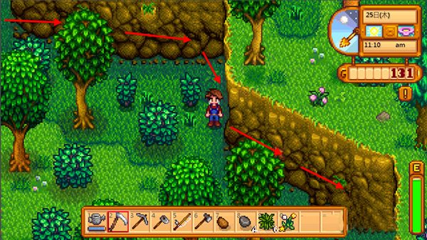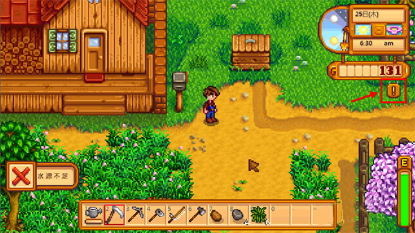 体力:当玩家进行一些操作时会减少一定量的体力,如钓鱼、砍树、锄地等,可以通过温泉和吃一些食物恢复。