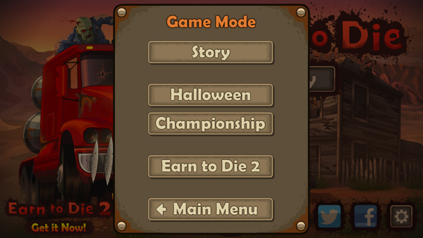 1、打开战车撞僵尸最新版,点击play开始,选择游戏模式,游戏现有故事模式、挑战模式等玩法