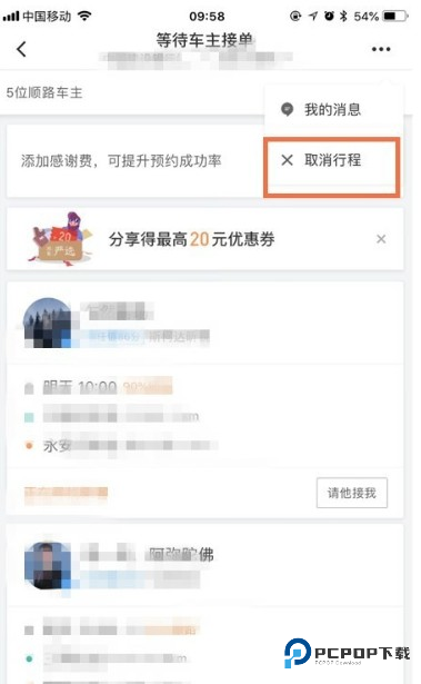 4、从弹出的菜单选项中,找到并点 “取消行程”。
