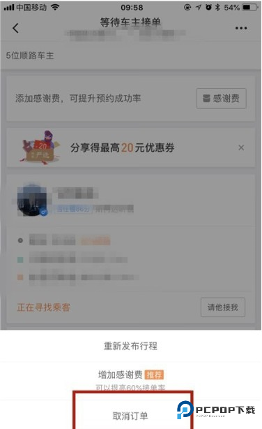 6、接下来会要求你选择取消原因,比如 “不想等了”、“行程有变” 等理由,根据你的实际情况选一个最贴切的点下去,订单就正式取消掉了。