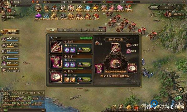 兵器也有两套位置,目前看到其中一套升级的属性是:攻击 + 5,防御 + 3,血量 + 24。这个比例有点不同,大约是攻击:防御:血量 = 2.67 : 1 : 8。