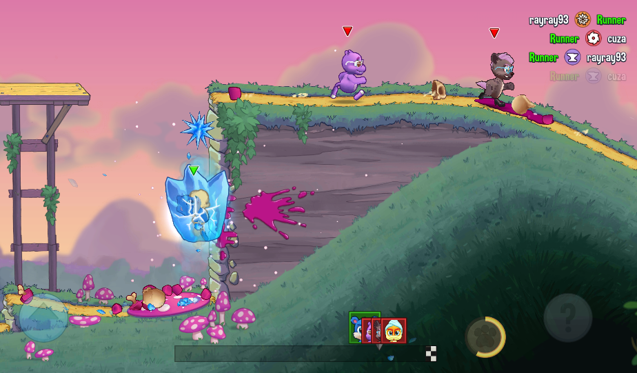 2、四人同时开始奔跑,赛道中拥有多种道具盒,拥有雷电,飞锯,冰冻等多种道具。