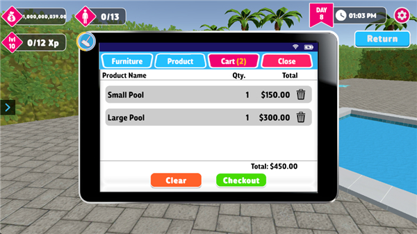 水上乐园模拟器手机版随着玩家清理垃圾、接顾客可以提升等级,解锁等级后可购买更多内容,招聘员工、购买饮料、水果供给顾客等等。