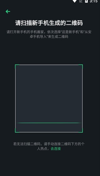 2、然后扫描新设备生成的二维码即可搬家。
