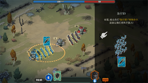 5、当与敌人同时攻占同一个地堡时,可以使用急行军,快速攻占,可以随后可以借用地堡的防御加成抵御更多的敌人。