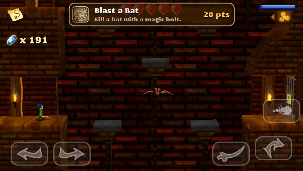 猎杀蝙蝠:用魔法箭击溃一只蝙蝠,20分