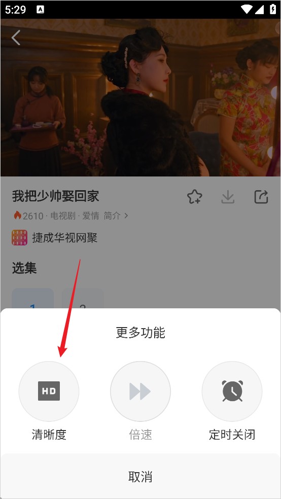 3、出现弹窗后选择清晰度