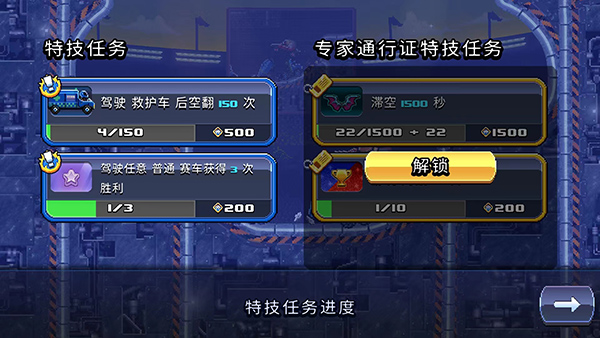 7、游戏中还有各种各样的特级任务可以完成,任务完成后可解锁金币、赛车、奖杯等等资源,