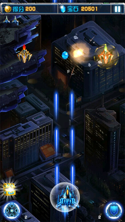 4、战机变身后,火力超强秒杀一切敌人,给你一骑当千的感觉