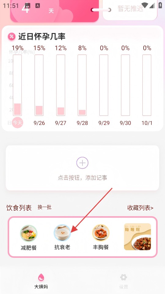 2、在主界面的饮食列表区域,点击【抗衰老】选项,进入抗衰老饮食推荐页面。